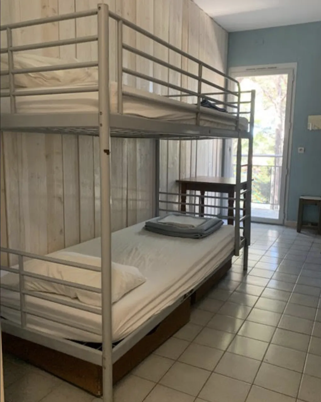 Les hébergements sont conçus en mode dortoir avec chambres de 2 à 4 couchages. Chaque espace propose des lits simples ou superposés. Un hébergement simple et pratique qui favorise la rencontre et l’esprit communautaire.